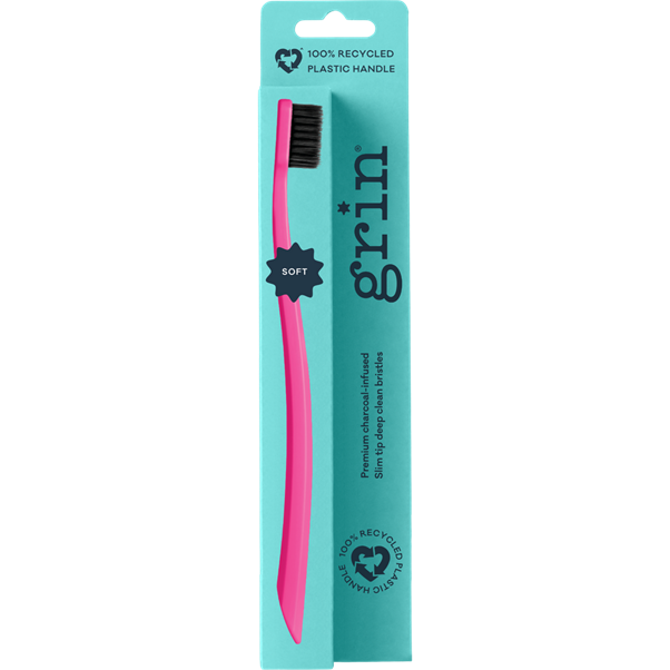 GRIN NATURAL 100% RECYCLED TOOTHBRUSH SINGLE FUSCHIA SOFT