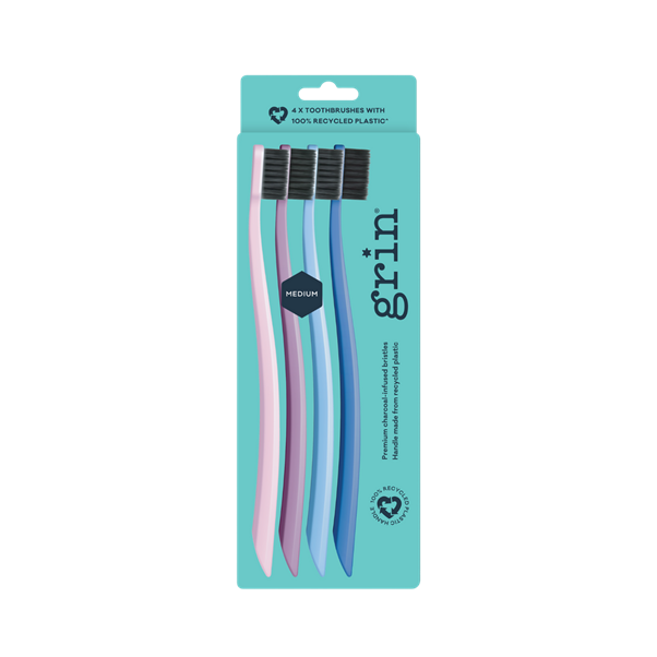 GRIN 100% RECYCLED TOOTHBRUSH PURPLE MEDIUM 4PK